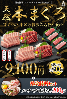 天然本まぐろごちそうセット あかみ約200g×2、中とろ約200g×2、ねぎとろ100g×2