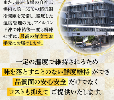 近年では多くの外国船がありますが、やはり優れた技術と長い経験をもつ日本船が獲る鮪は格別です。最高の鮪がいる極寒の荒れた海の操業は難易度が高く、熟練の船しか行くことができません。中でも、鮪の生体を熟知し良質の鮪を漁獲する超一流の船は数隻に絞られます。漁獲された鮪は、エラ、内臓、ヒレを素早く処理し、血抜きした上で凍結庫で急速凍結させます。この処理を丁寧かつ速やかに行う技術があるからこそ、最高の鮪を最高の鮮度のまま日本へ届けることができるのです。